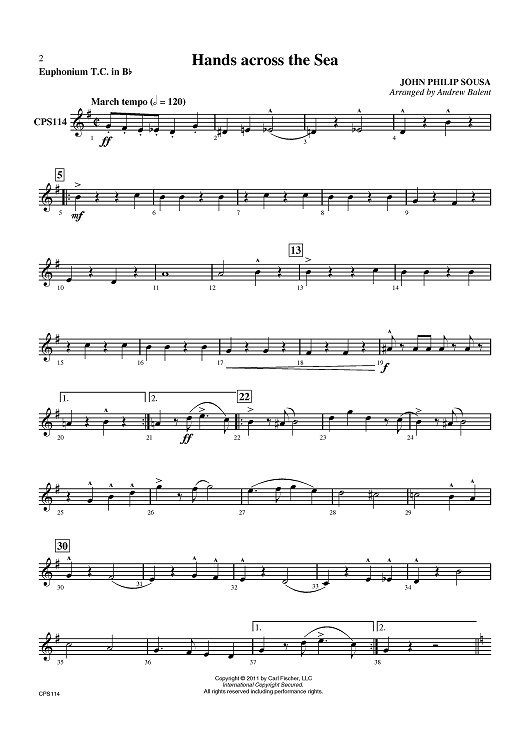 Digital Sheet Music for Hands Across The Sea (March) - Euphonium TC by John Philip Sousa, Andrew Balent scored for Concert Band; id:420147