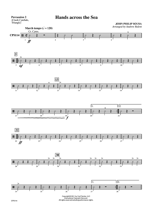 Digital Sheet Music for Hands Across The Sea (March) - Percussion 2 by John Philip Sousa, Andrew Balent scored for Concert Band; id:420153