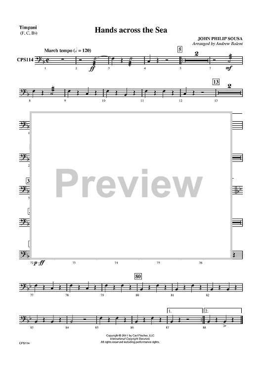 Digital Sheet Music for Hands Across The Sea (March) - Timpani by John Philip Sousa, Andrew Balent scored for Concert Band; id:420151