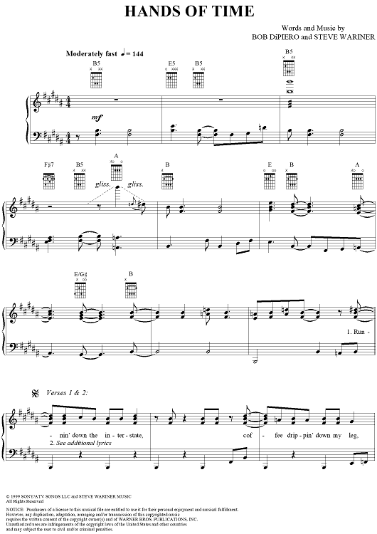 Digital Sheet Music for Hands of Time by Steve Wariner, Bob DiPiero scored for Piano/Vocal/Chords; id:203782