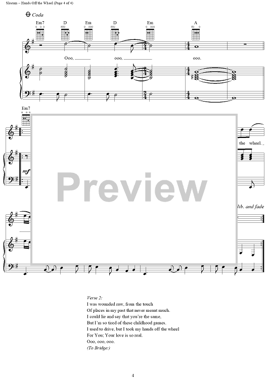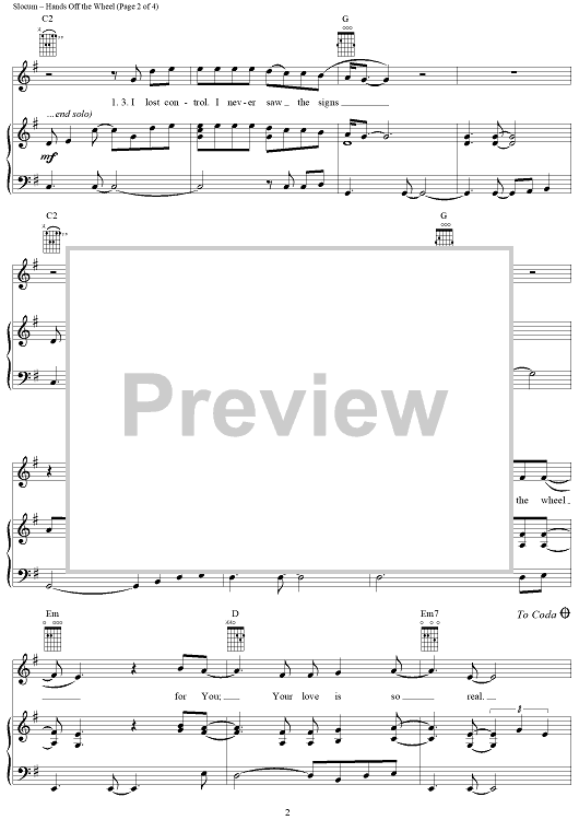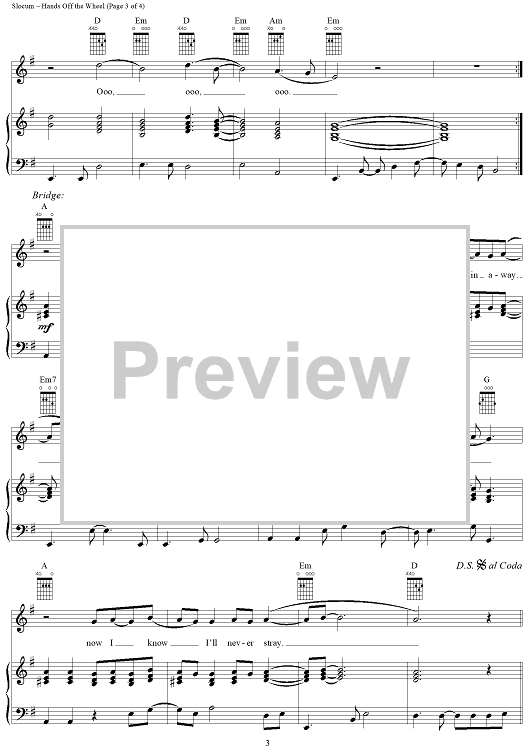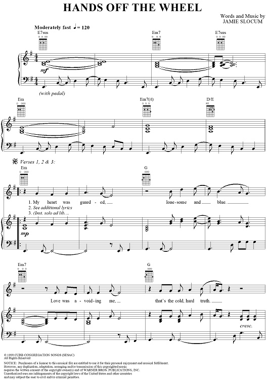 Digital Sheet Music for Hands off the Wheel by Jamie Slocum scored for Piano/Vocal/Chords; id:236331