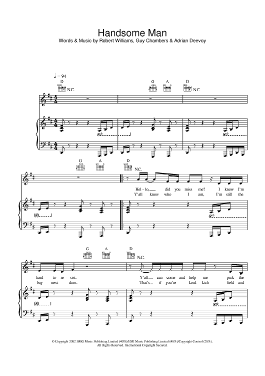 Digital Sheet Music for Handsome Man by Robbie Williams scored for Piano/Vocal/Chords; id:377823