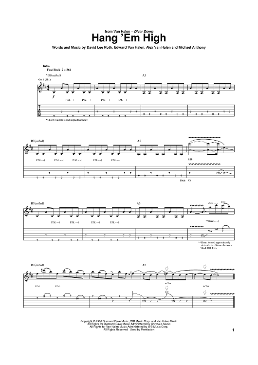 Digital Sheet Music for Hang 'Em High by Eddie Van Halen, David Lee Roth, Michael Anthony, Alex Van Halen, Van Halen scored for Guitar Tab; id:385946