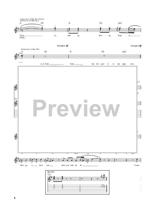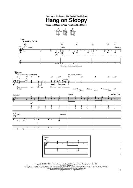 Digital Sheet Music for Hang On Sloopy by The McCoys, Bert Russell, Wes Farrell, Rick Derringer scored for Guitar Tab; id:374455