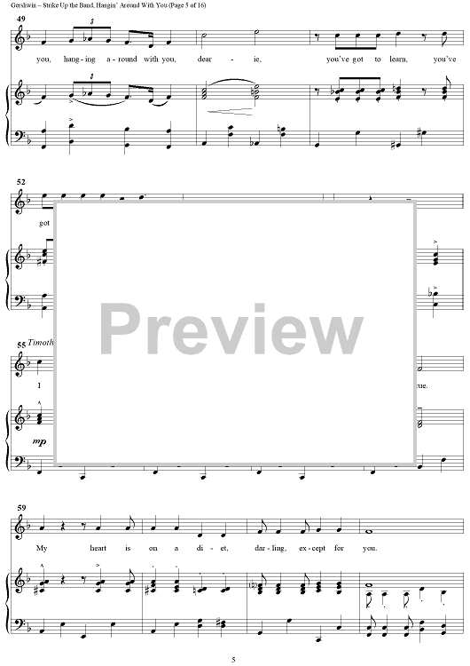 Digital Sheet Music for Hangin' Around With You by George Gershwin, Ira Gershwin scored for Piano/Vocal/Chords; id:234704