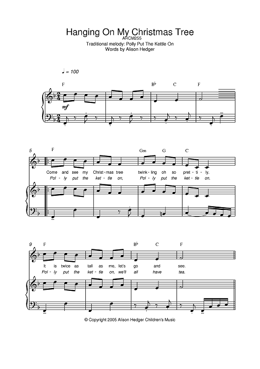 Digital Sheet Music for Hanging On My Christmas Tree by Alison Hedger scored for Piano/Vocal/Chords; id:387510