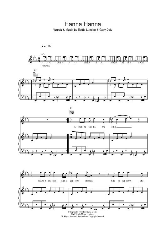 Digital Sheet Music for Hanna Hanna by China Crisis, Gary Daly, Eddie Lundon scored for Piano/Vocal/Chords; id:401198