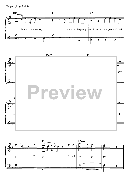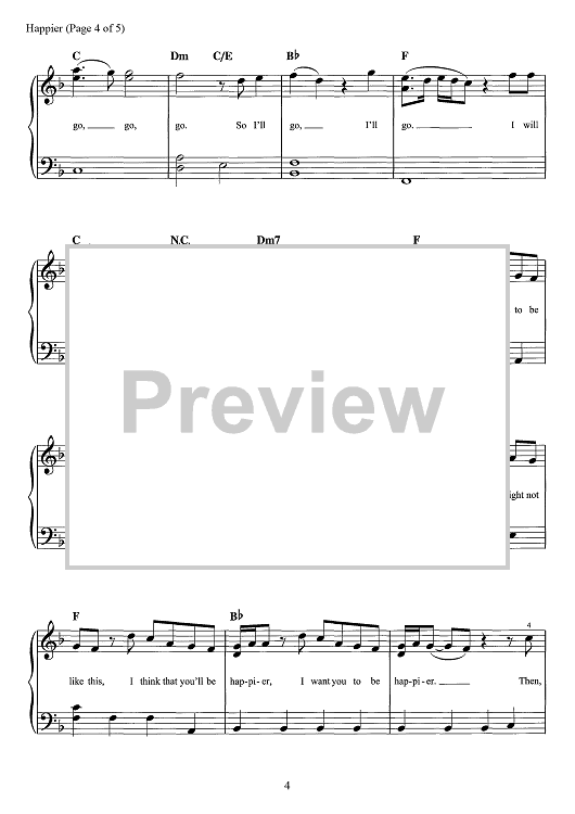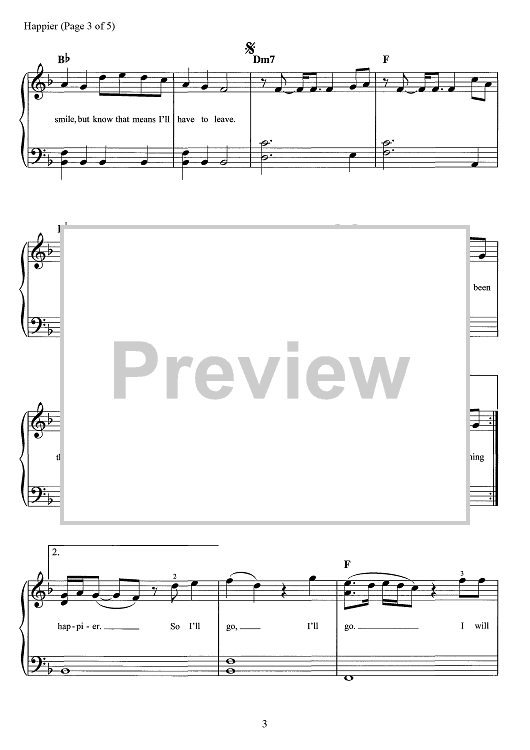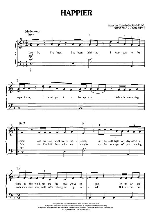 Digital Sheet Music for Happier by Steve Mac, Bastille, Dan Smith, Marshmello scored for Easy Piano/Vocal/Chords; id:467702