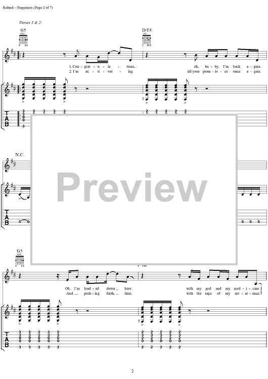 Digital Sheet Music for Happiness by Collective Soul, Ed Roland scored for Guitar Tab/Vocal; id:286849