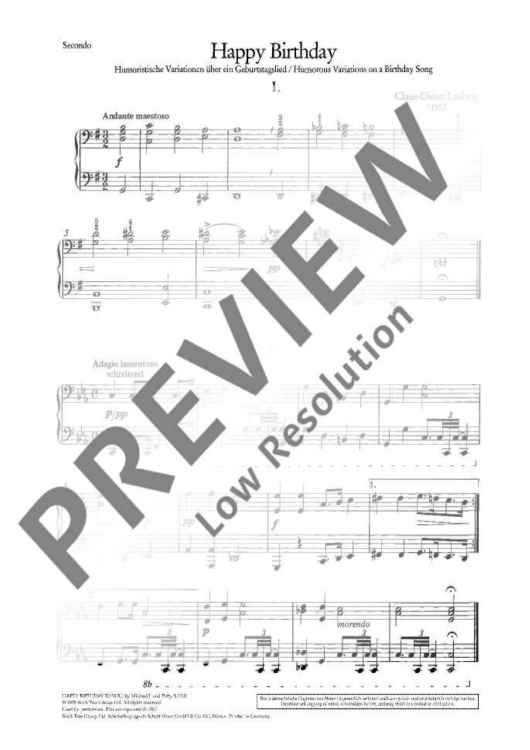 Digital Sheet Music for Happy Birthday by Claus-Dieter Ludwig scored for Piano (4 Hands); id:475050