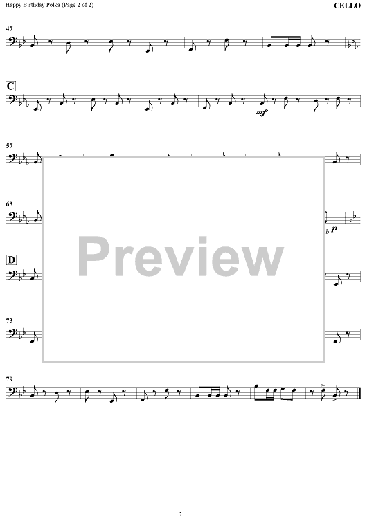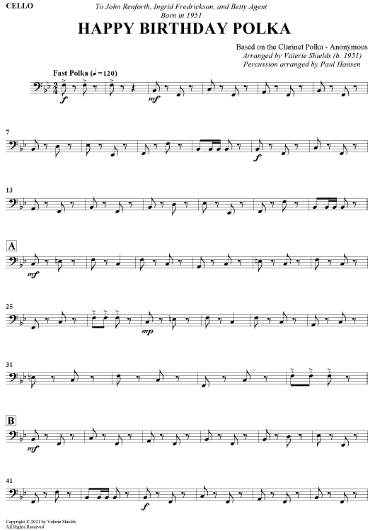 Digital Sheet Music for Happy Birthday Polka - Cello by Paul Hansen, Valerie Shields scored for Flexible Ensemble; id:468867