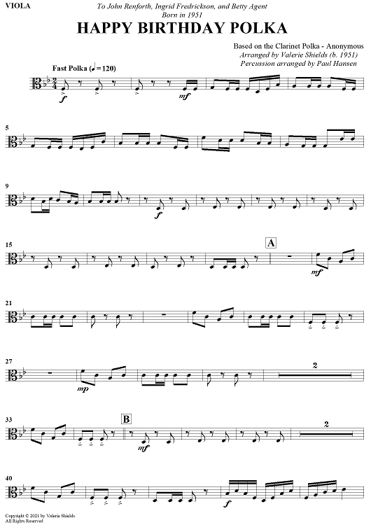 Digital Sheet Music for Happy Birthday Polka - Viola by Paul Hansen, Valerie Shields scored for Flexible Ensemble; id:468865