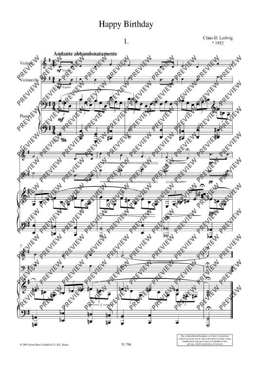 The Happy Birthday menus for two- (ED0 9748) and four-hand (ED0 9749) piano, for accordion duo (ED 8054) or string quartet (ED 7717) by Claus-Dieter Ludwig are well-known and extremely popular. Now the successful arranger presents a new edition for violin, cello and piano. Enjoy your musical meal with these five birthday courses: