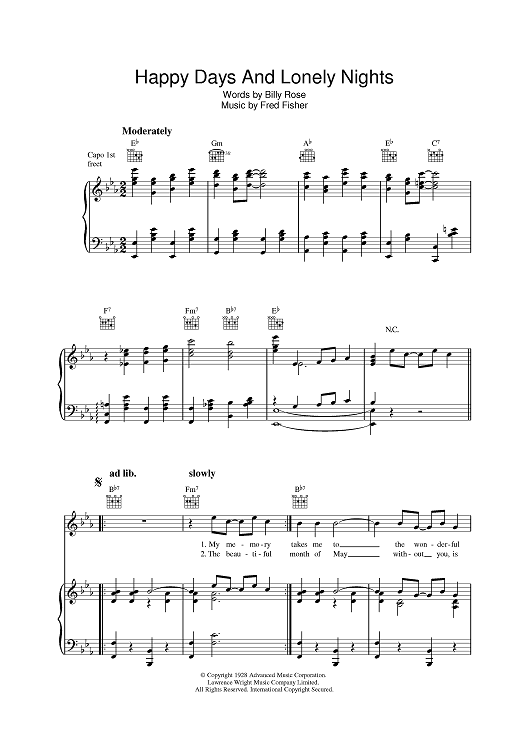 Digital Sheet Music for Happy Days And Lonely Nights by Billy Rose, Fred Fisher scored for Piano/Vocal/Chords; id:392751