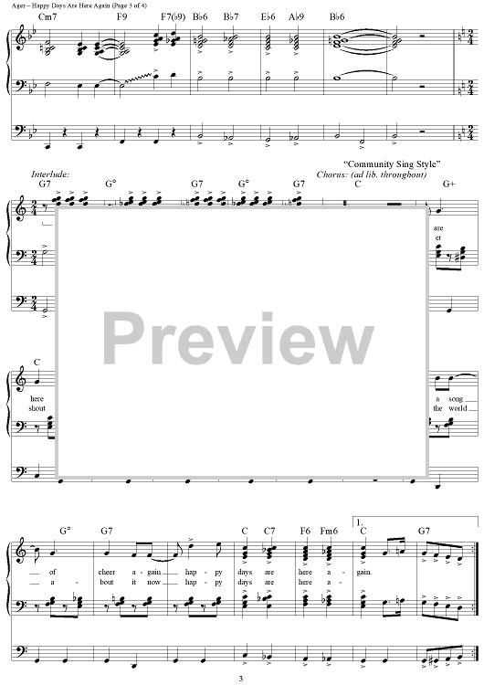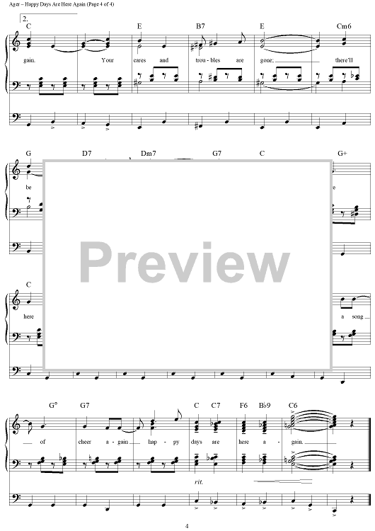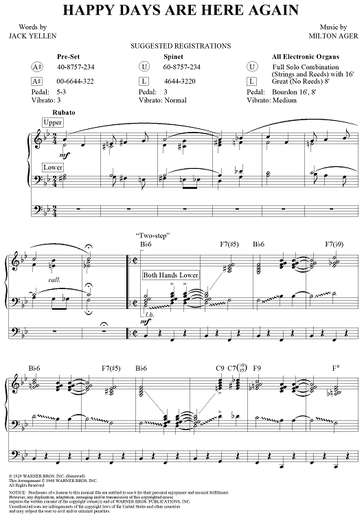 Digital Sheet Music for Happy Days Are Here Again by Milton Ager, Jack Yellen scored for Easy Organ/Vocal; id:277988