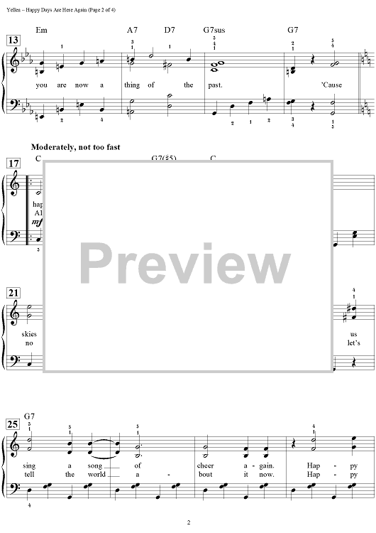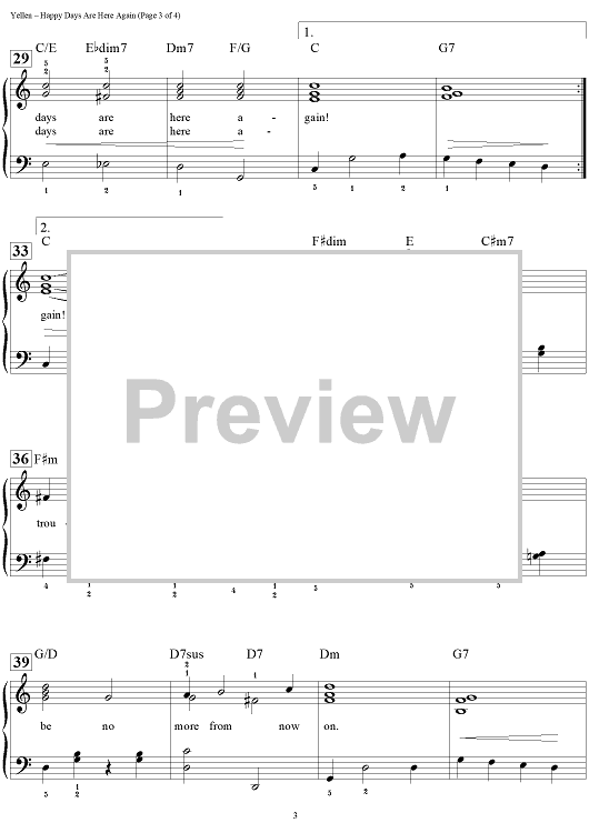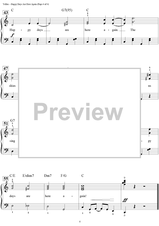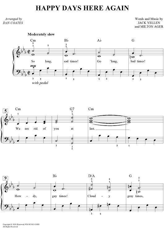 Digital Sheet Music for Happy Days Are Here Again by Dan Coates, Milton Ager, Jack Yellen scored for Easy Piano/Vocal/Chords; id:456991