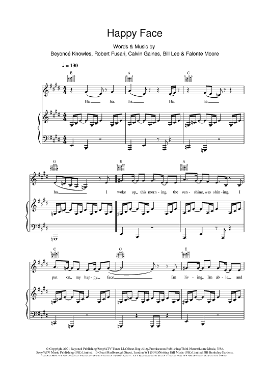 Digital Sheet Music for Happy Face by Destiny's Child scored for Piano/Vocal/Chords; id:377401