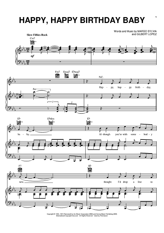 Digital Sheet Music for Happy, Happy Birthday Baby by Ronnie Milsap, Gilbert Lopez, Margo Sylvia, The Tune Weavers scored for Piano/Vocal/Chords; id:393098
