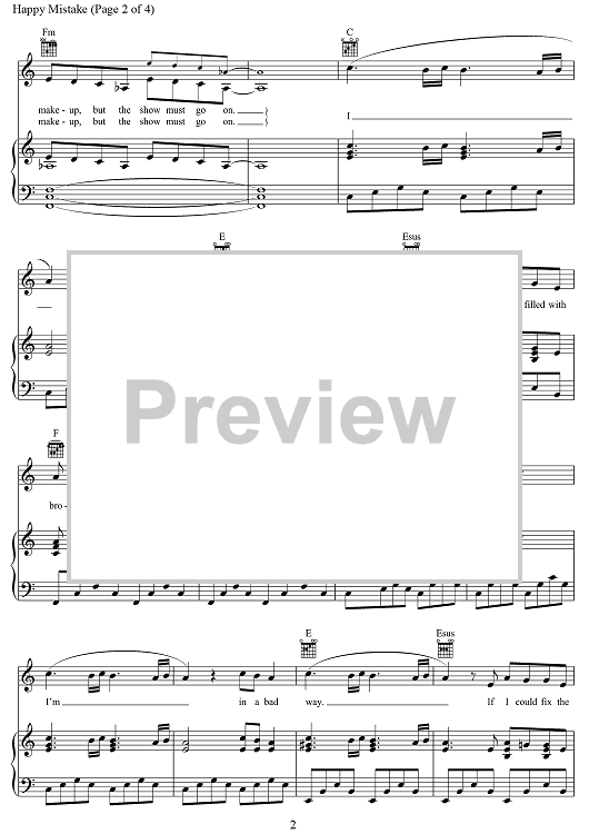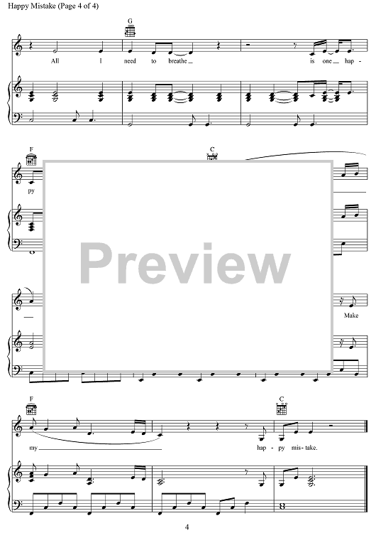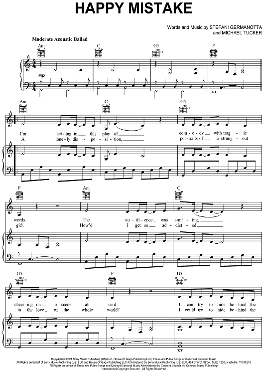 Digital Sheet Music for Happy Mistake by Stefani Germanotta, Lady Gaga, Michael Tucker scored for Piano/Vocal/Chords; id:504825