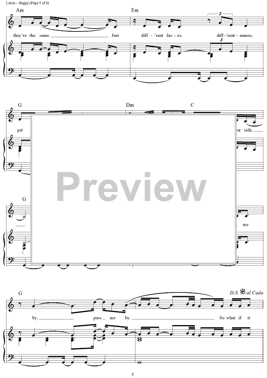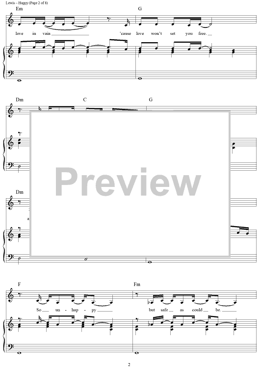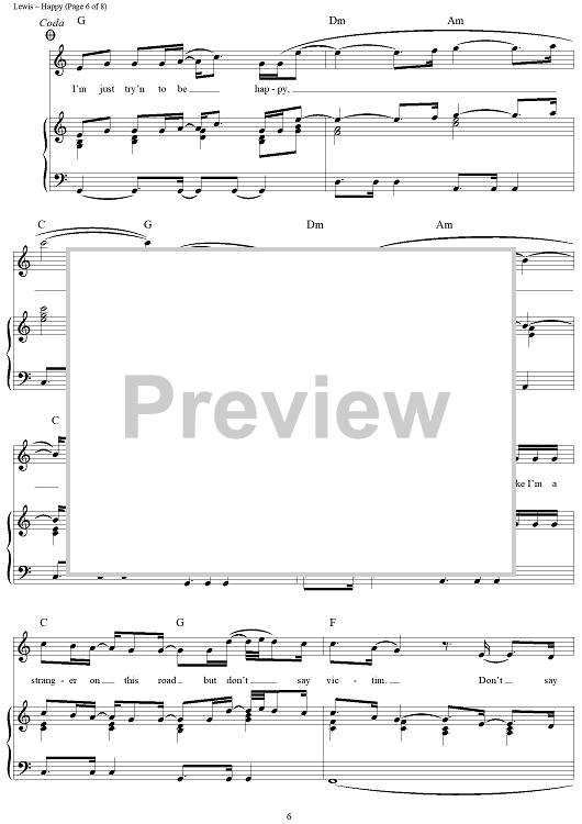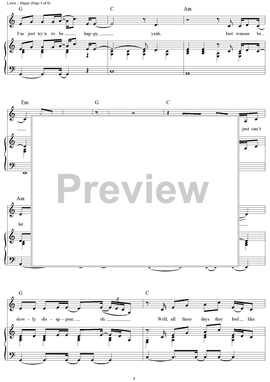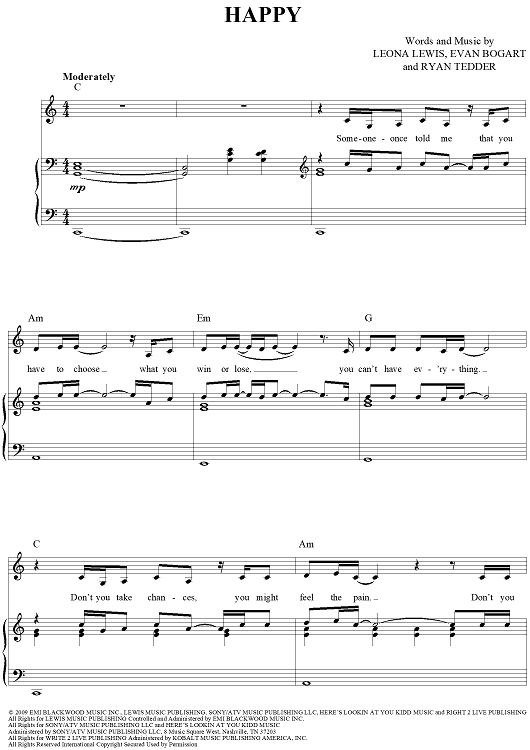 Digital Sheet Music for Happy by Ryan Tedder, Leona Lewis scored for Piano/Vocal/Chords; id:410129