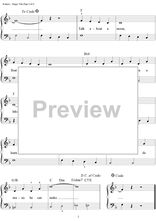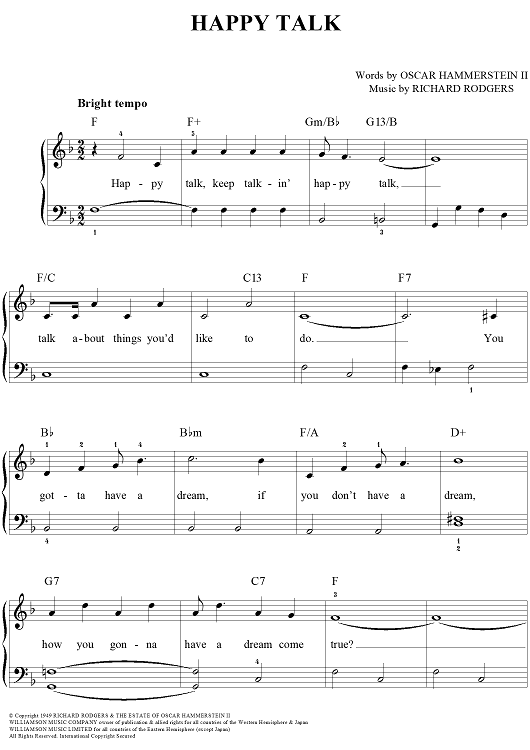Digital Sheet Music for Happy Talk by Richard Rodgers, Oscar Hammerstein II scored for Easy Piano/Vocal/Chords; id:384559