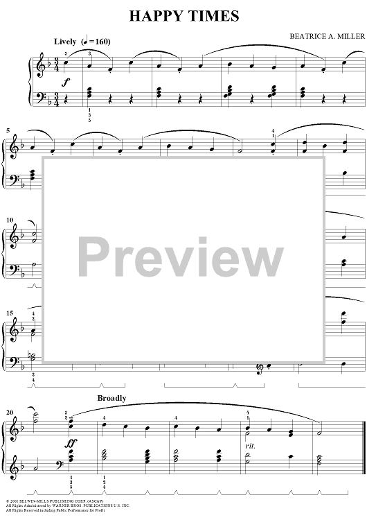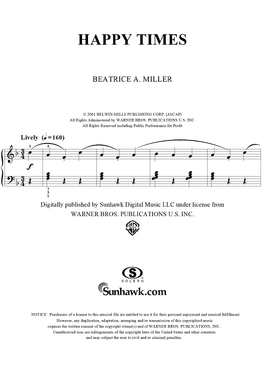 Digital Sheet Music for Happy Times by Beatrice A. Miller scored for Piano Solo; id:292739