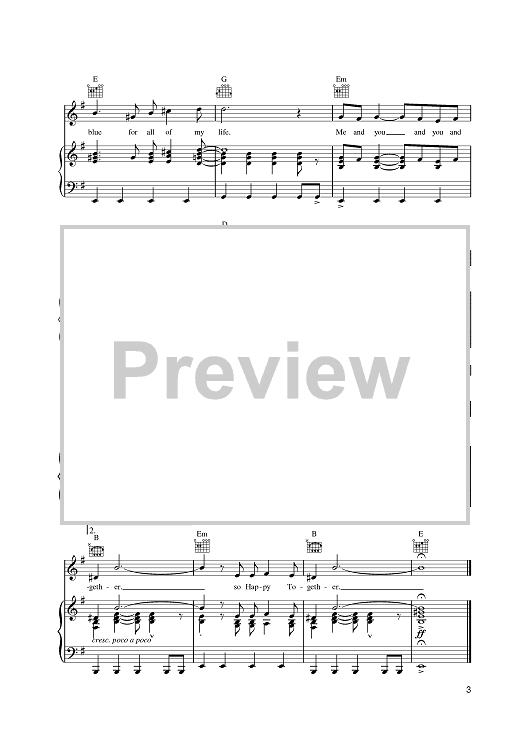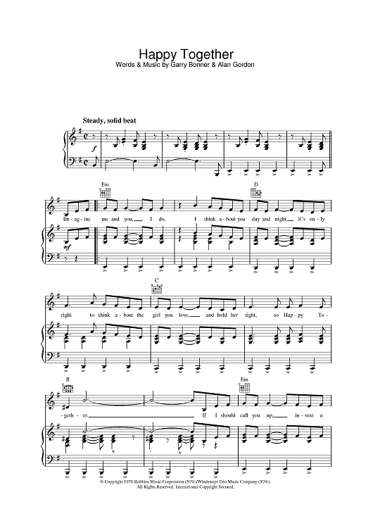 Digital Sheet Music for Happy Together by Alan Gordon, Garry Bonner, The Turtles scored for Piano/Vocal/Chords; id:387984
