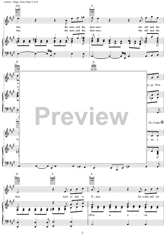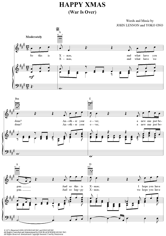 Digital Sheet Music for Happy Xmas (War Is Over) by John Lennon, Yoko Ono Lennon scored for Piano/Vocal/Chords; id:366902