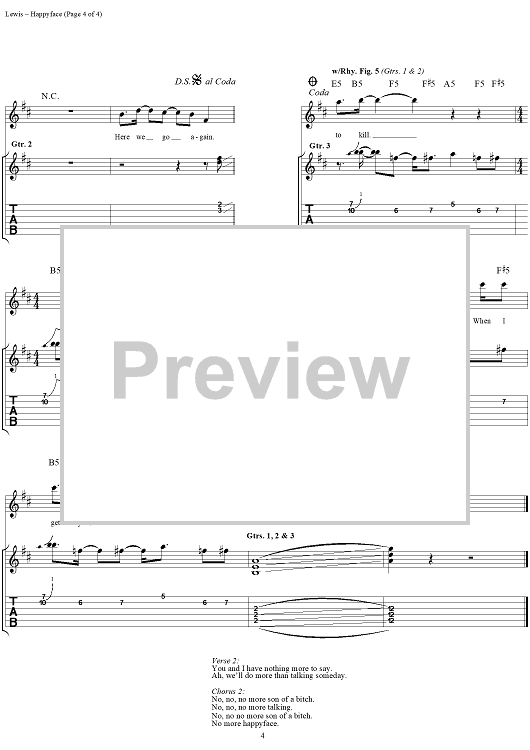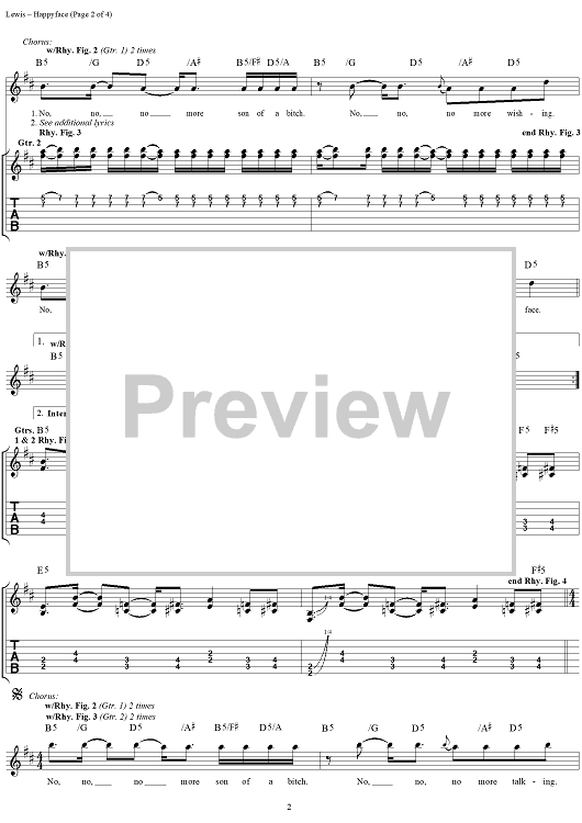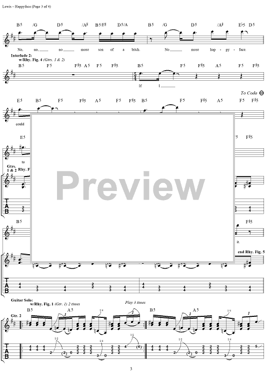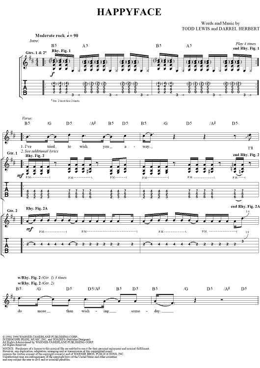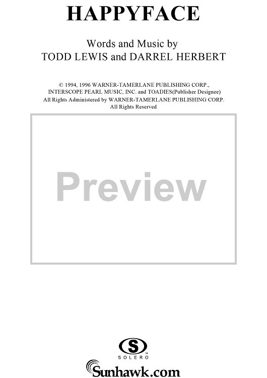 Digital Sheet Music for Happyface by Todd Lewis, Darrel Herbert, Toadies scored for Guitar Tab/Vocal; id:113113