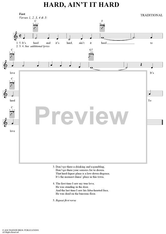 Digital Sheet Music for Hard, Ain't It Hard by Traditional scored for Lead Sheet; id:292684