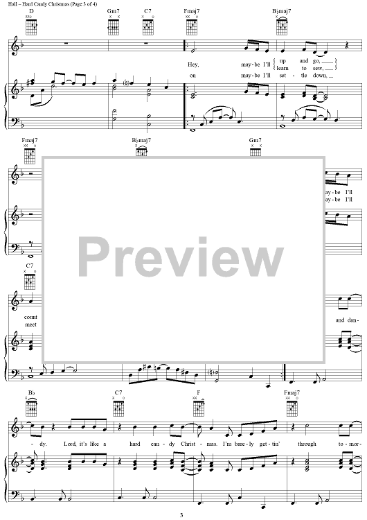 Digital Sheet Music for Hard Candy Christmas by Carol Hall, Ann-Margret scored for Piano/Vocal/Chords; id:286784