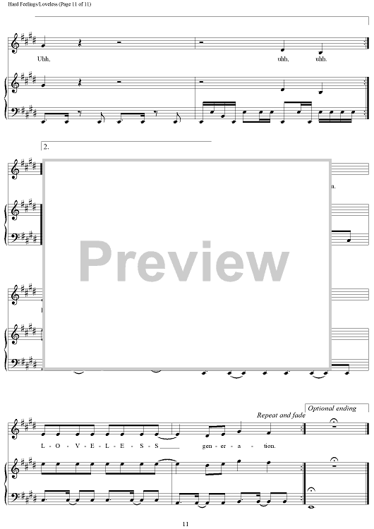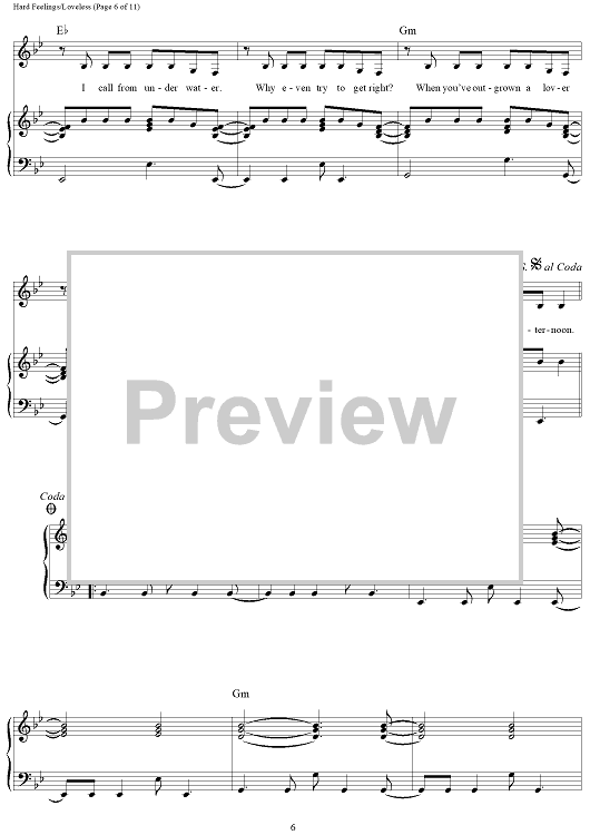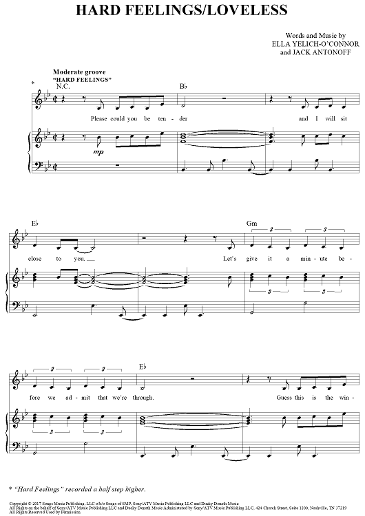 Digital Sheet Music for Hard Feelings/Loveless by Jack Antonoff, Lorde, Ella Yelich-O'Connor scored for Piano/Vocal/Chords; id:465517