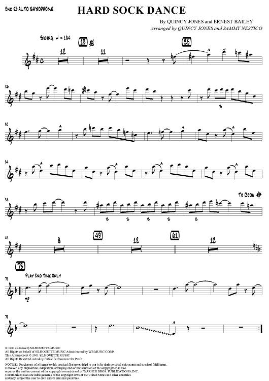 "Hard Sock Dance - Alto Saxophone 2" Sheet Music by Quincy Jones