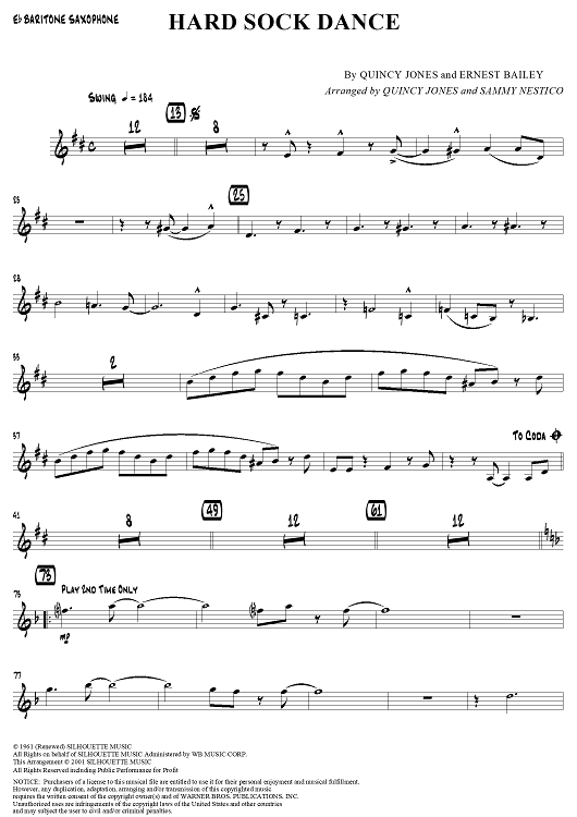 "Hard Sock Dance - Baritone Saxophone" Sheet Music by Quincy Jones