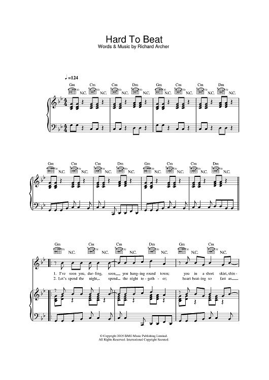 Digital Sheet Music for Hard To Beat by Richard Archer, Hard-Fi scored for Piano/Vocal/Chords; id:386594