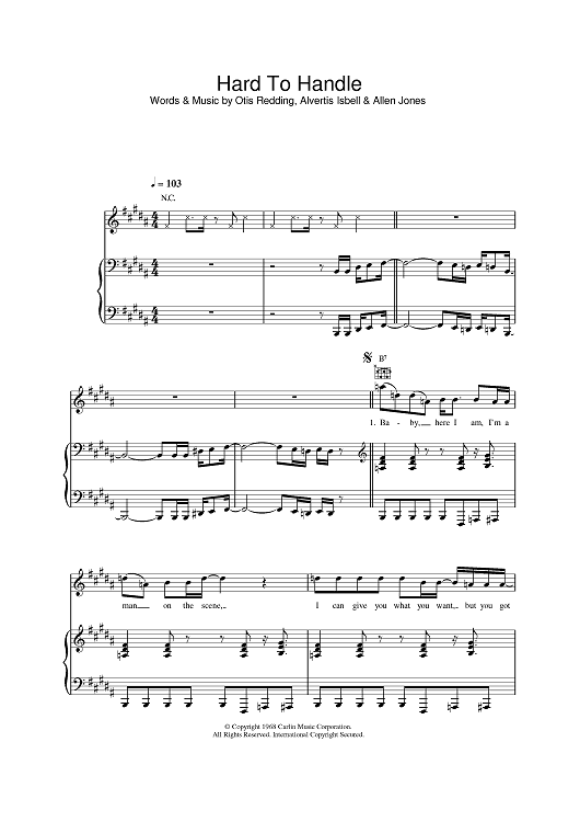 Digital Sheet Music for Hard To Handle by The Black Crowes, Otis Redding, Alvertis Isbell, Allen Jones scored for Piano/Vocal/Chords; id:388326