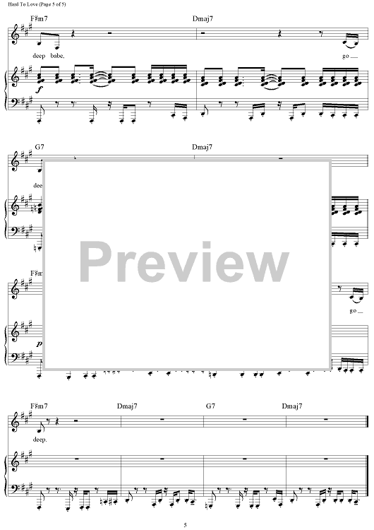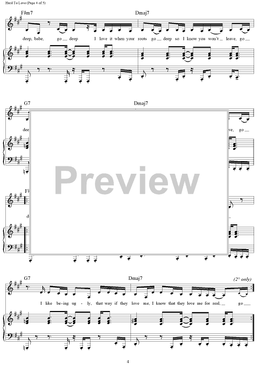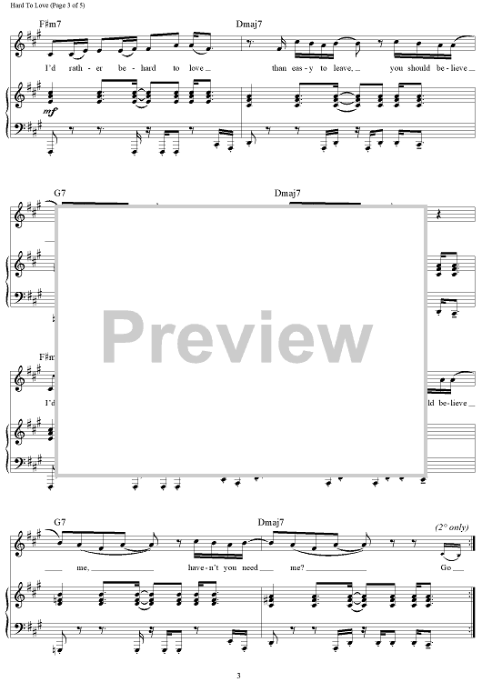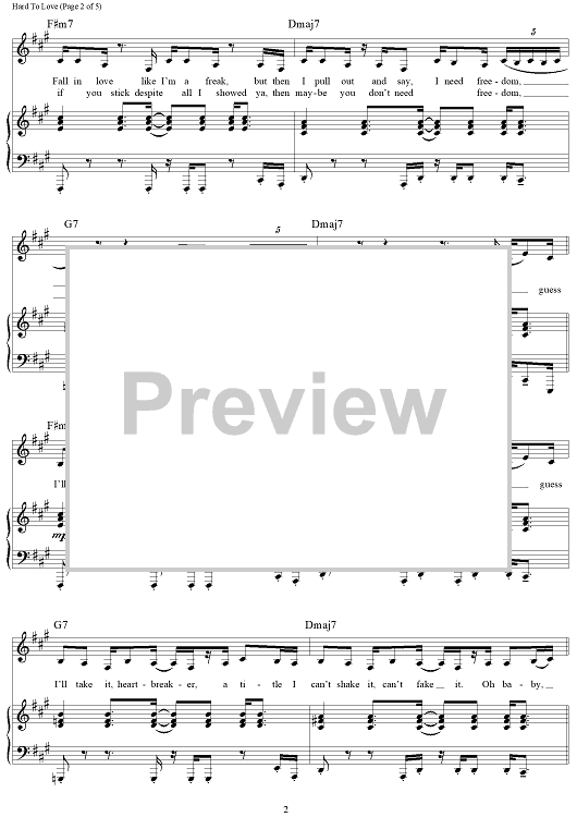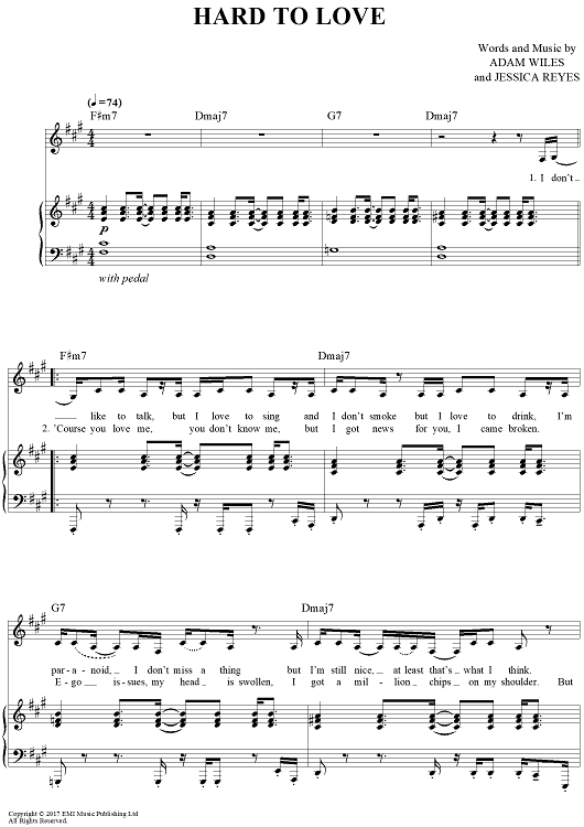 Digital Sheet Music for Hard to Love by Adam Wiles, Lee Brice, Jessica Reyes scored for Piano/Vocal/Chords; id:465426