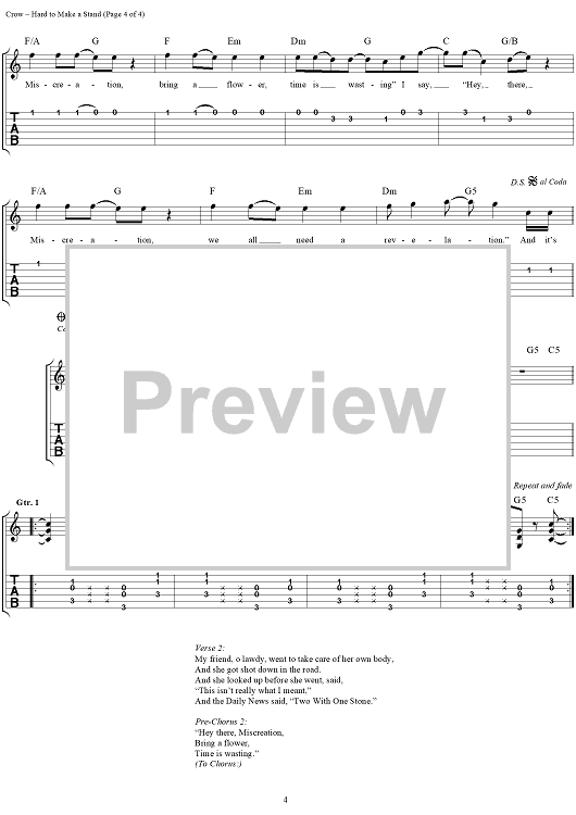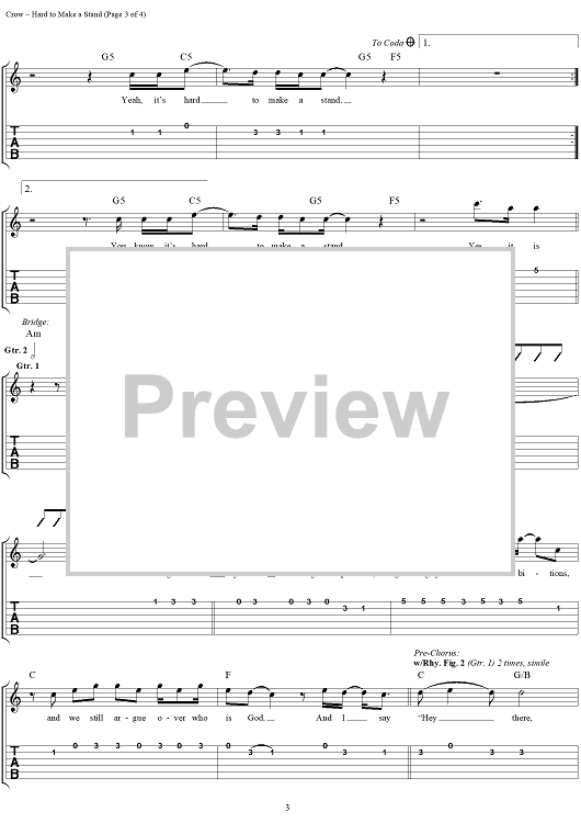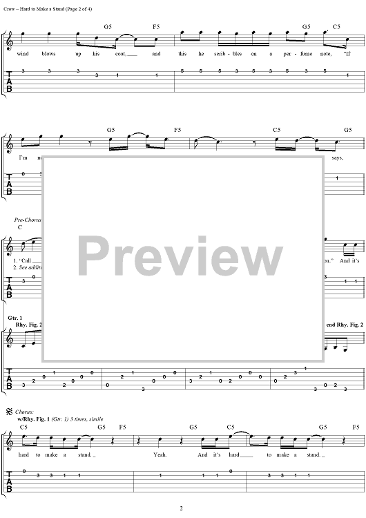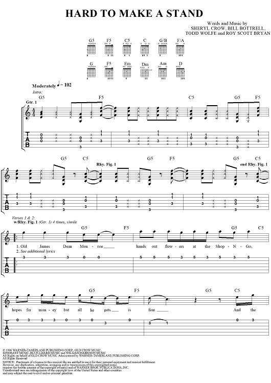 Digital Sheet Music for Hard to Make a Stand by Sheryl Crow, Bill Bottrell, Todd Wolfe, R. Scott Bryan scored for Easy Guitar Tab/Vocal; id:131701