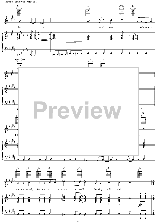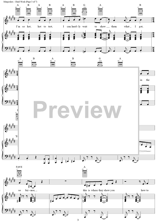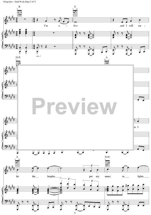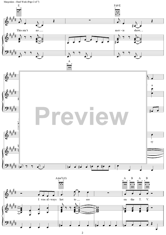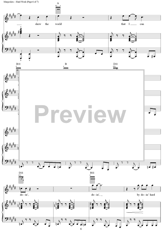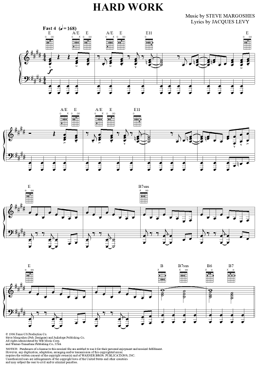 Digital Sheet Music for Hard Work by Steve Margoshes, Jacques Levy scored for Piano/Vocal/Chords; id:359463