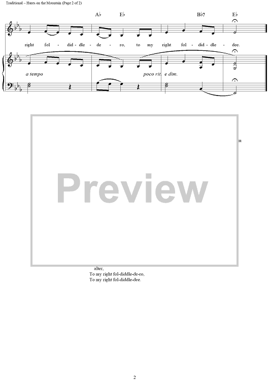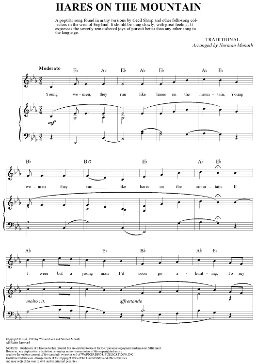 Digital Sheet Music for Hares on the Mountain by Norman Monath, Traditional scored for Piano/Vocal/Chords; id:261134