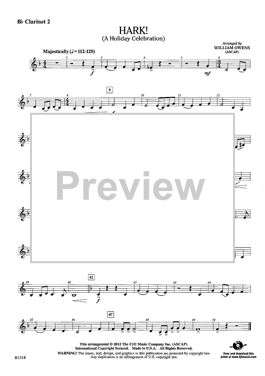 Digital Sheet Music for Hark! (A Holiday Celebration) - Bb Clarinet 2 by Traditional, William Owens scored for Concert Band; id:439875