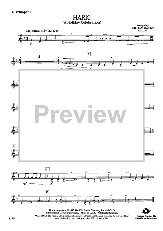 Digital Sheet Music for Hark! (A Holiday Celebration) - Bb Trumpet 2 by Traditional, William Owens scored for Concert Band; id:439881