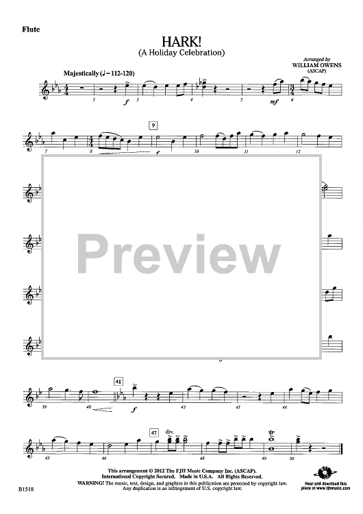 Digital Sheet Music for Hark! (A Holiday Celebration) - Flute by Traditional, William Owens scored for Concert Band; id:439871