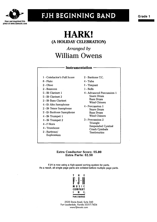 Digital Sheet Music for Hark! (A Holiday Celebration) - Score Cover by Traditional, William Owens scored for Concert Band; id:439870