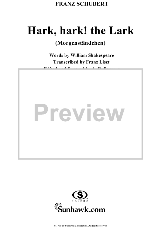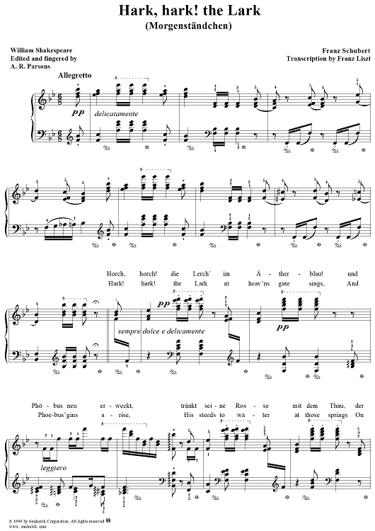 "Hark, Hark! The Lark" Sheet Music by Franz Liszt