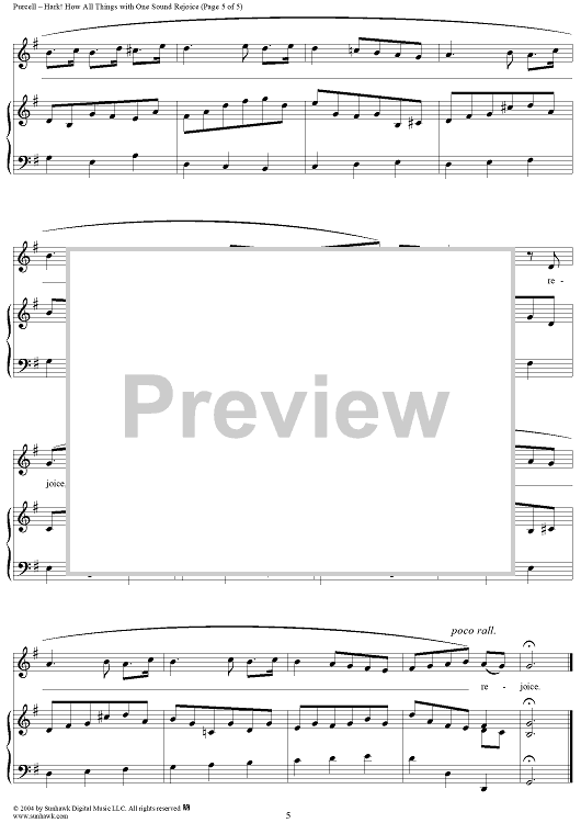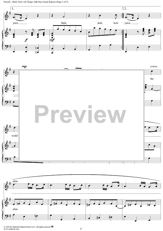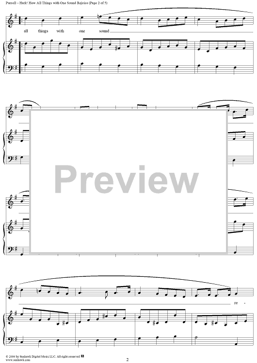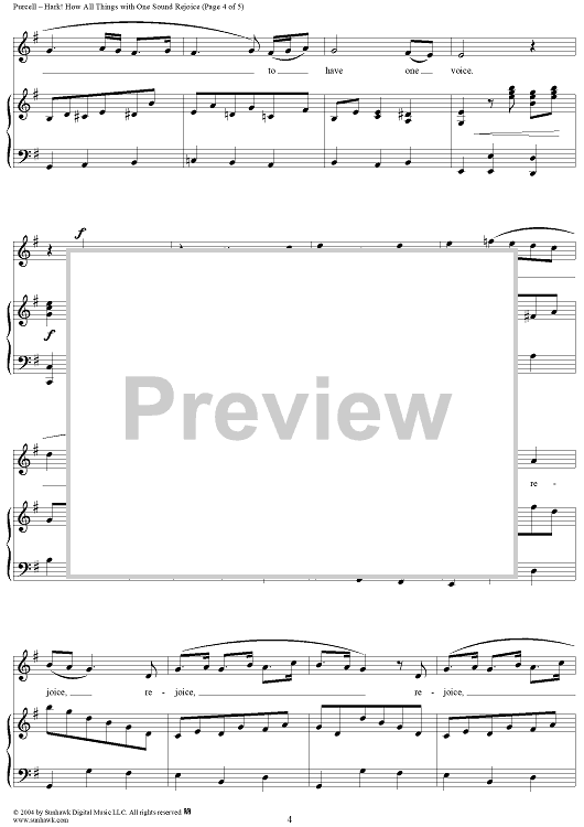 Digital Sheet Music for Hark! How All Things with One Sound Rejoice by Henry Purcell scored for Voice/Piano; id:303512