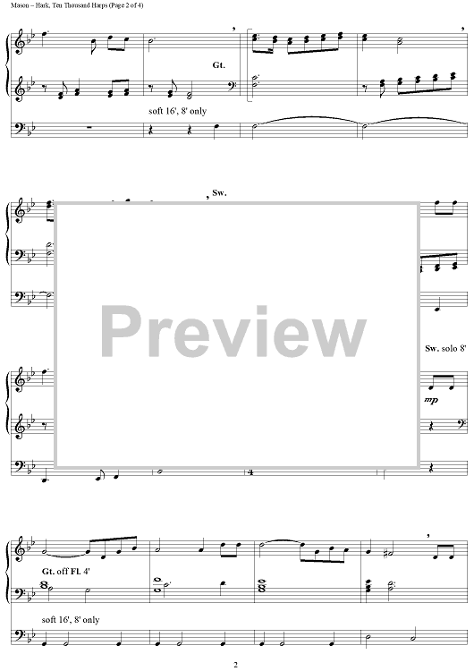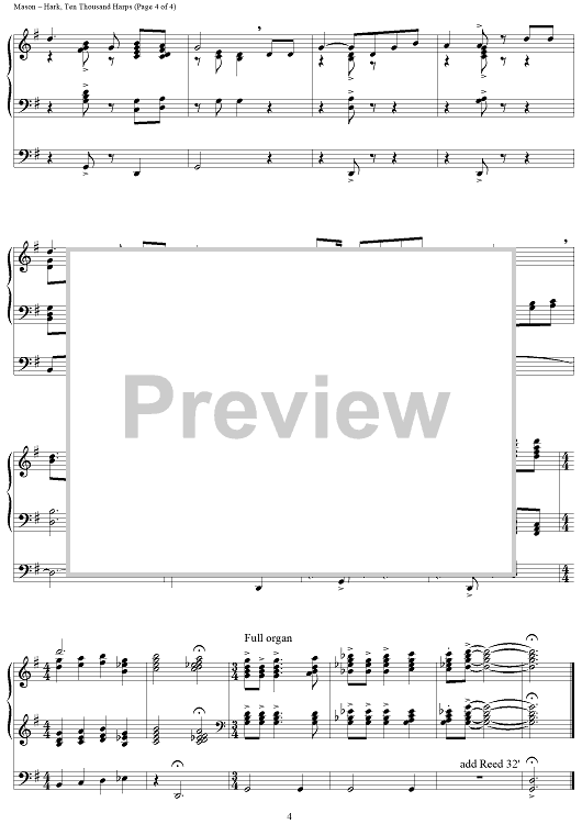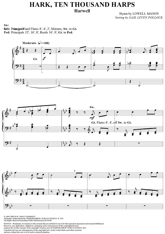 Digital Sheet Music for Hark, Ten Thousand Harps (Harwell) by Lowell Mason, Gail Leven Pollock scored for Organ Solo; id:251317