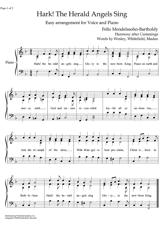 Digital Sheet Music for Hark, The Herald Angels Sing - Score by Felix Mendelssohn scored for Piano/Vocal; id:337533