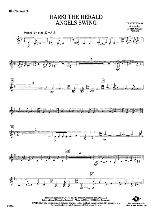 Digital Sheet Music for Hark! The Herald Angels Swing - Bb Clarinet 3 by Traditional, Chris Sharp scored for Concert Band; id:440360