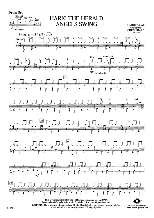 Digital Sheet Music for Hark! The Herald Angels Swing - Drum Set by Traditional, Chris Sharp scored for Concert Band; id:440382
